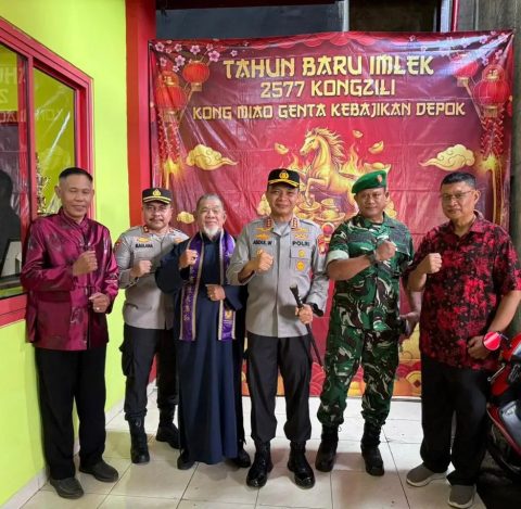 Kombes Pol Abdul Waras bersama rombongan mengunjungi sejumlah lokasi perayaan Imlek, diantaranya Kong Miao Genta Kebajikan Pancoran Mas, Vihara Gayatri Tapos, serta Lintang Semangat Genta Rohani di Kecamatan Cilodong.