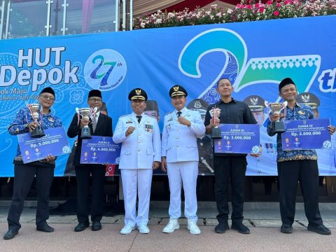 MARGONDA, depokupdate.id – Pada upacara peringatan Hari Ulang Tahun (HUT) ke-27 Kota Depok, turut diserahkan piagam dan hadiah kepada para pemenang Turnamen Tenis Meja Antar Instansi.